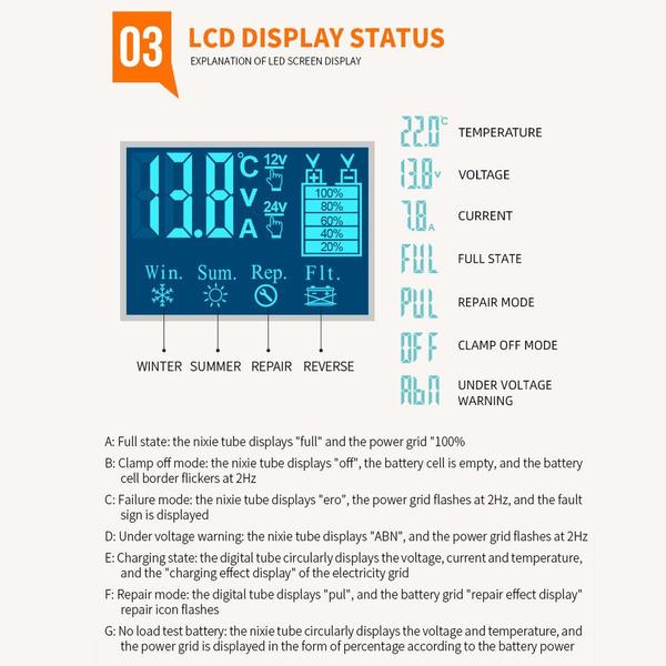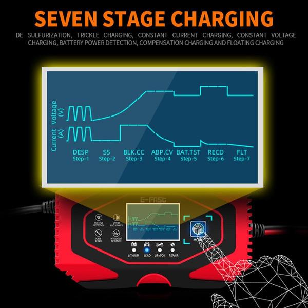 12 В/24 В 2-150 Ач, сенсорный переключатель, экран, импульсный ремонт, ЖК-зарядное устройство для автомобиля/мотоцикла/свинцовых транспортных средств/грузовиковAGM/гель/свинцово-кислотный/литиевый аккумулятор
