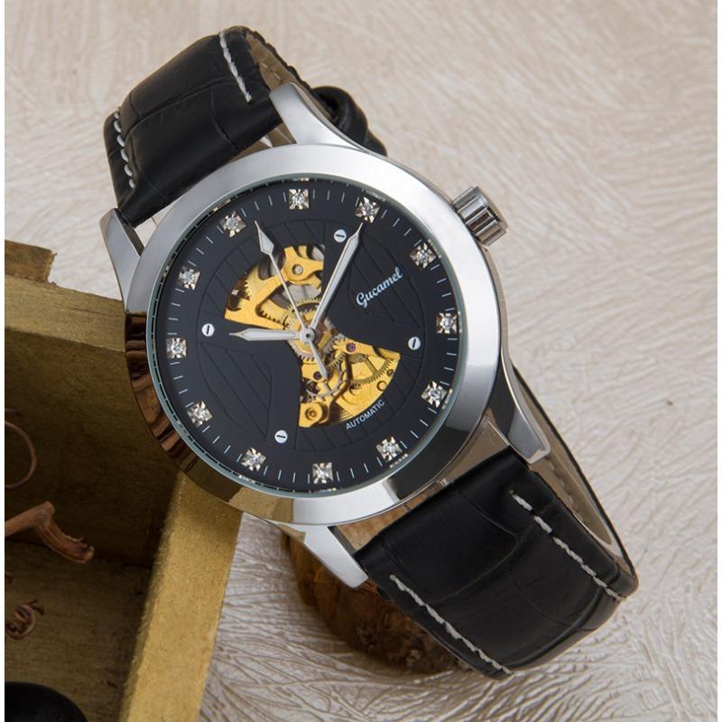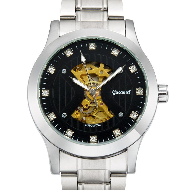 GUCAMEL модные мужские механические часы перфорированные механические часы мужские бриллиантовые мужские механические часы