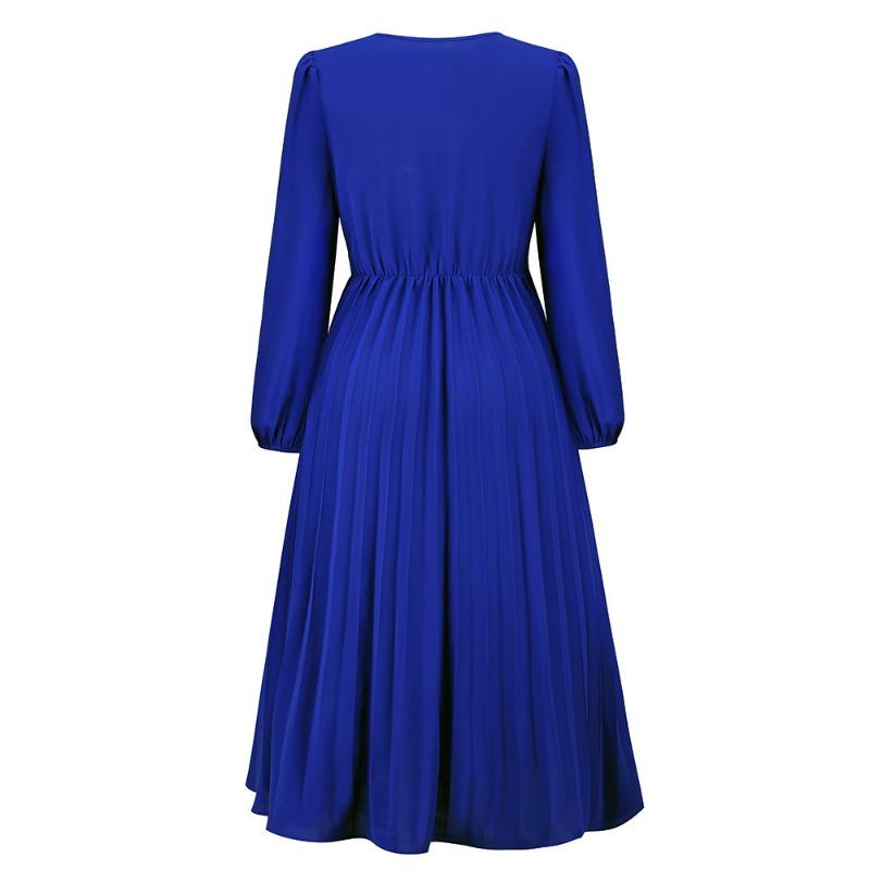 Осенне-зимнее женское платье с v-образным вырезом и длинными рукавами, плиссированные платья трапециевидной формы, платья средней длины