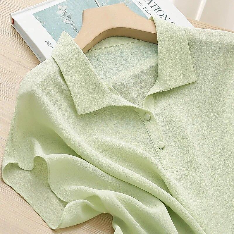 Сплошной цвет, свободная простая одежда, женская блузка, летние шелковые топы, элегантная офисная женская рубашка поло с короткими рукавами, Blusas 27817