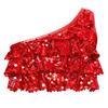 Детские топы с металлическими блестками для девочек, жилет на одно плечо, костюм для джазовых латинских бальных танцев