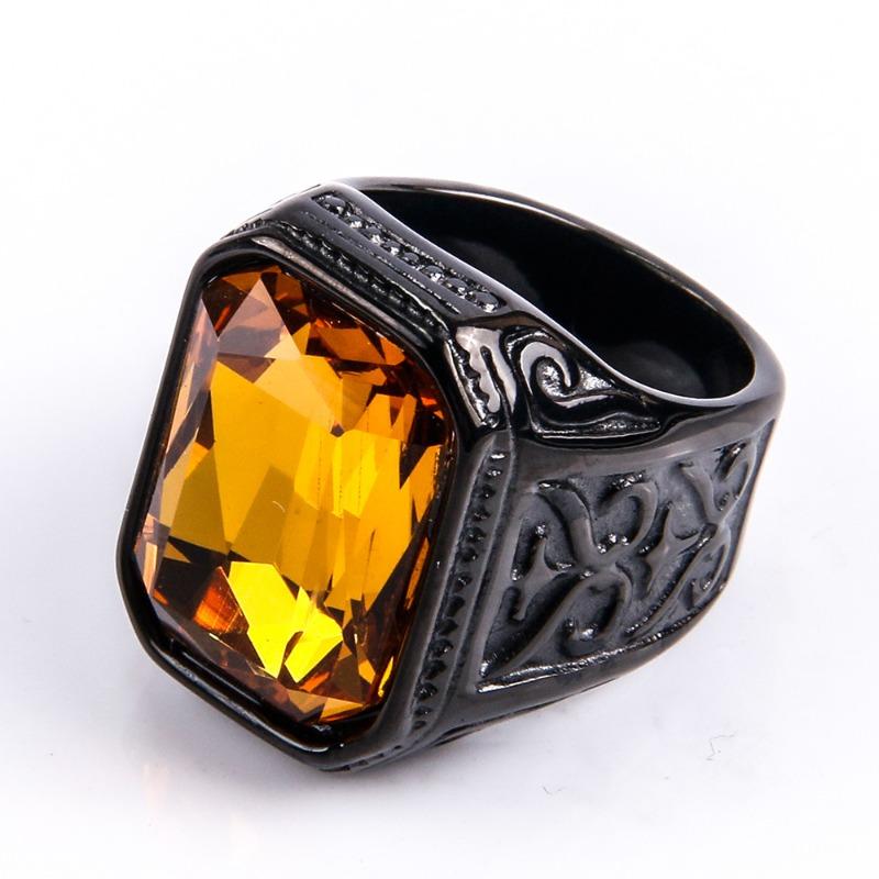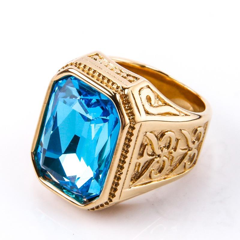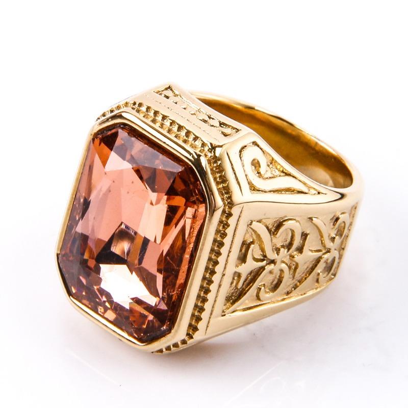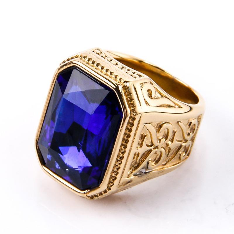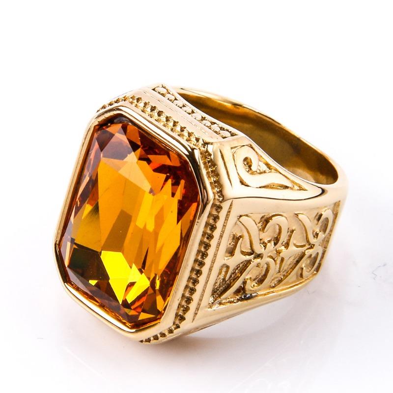 Мужское кольцо с драгоценными камнями, модное квадратное кольцо из нержавеющей стали в стиле хип-хоп, золотое роскошное хипстерское вечерние кольцо на палец