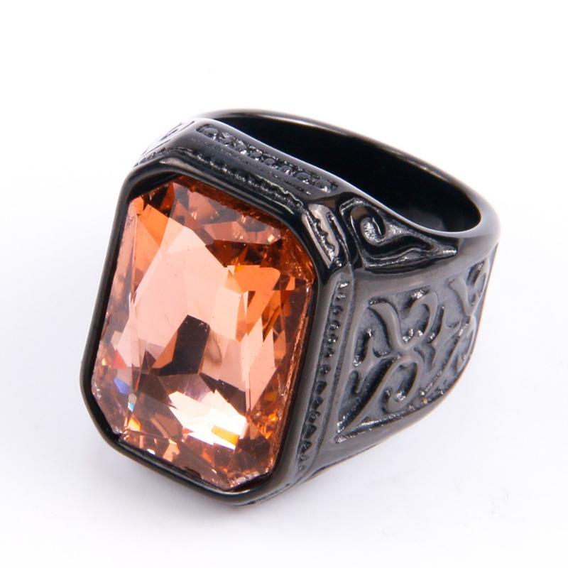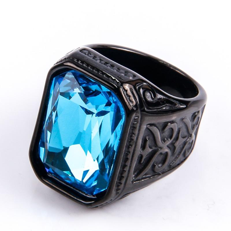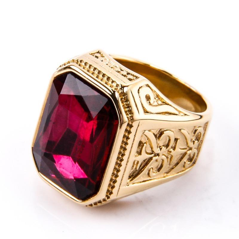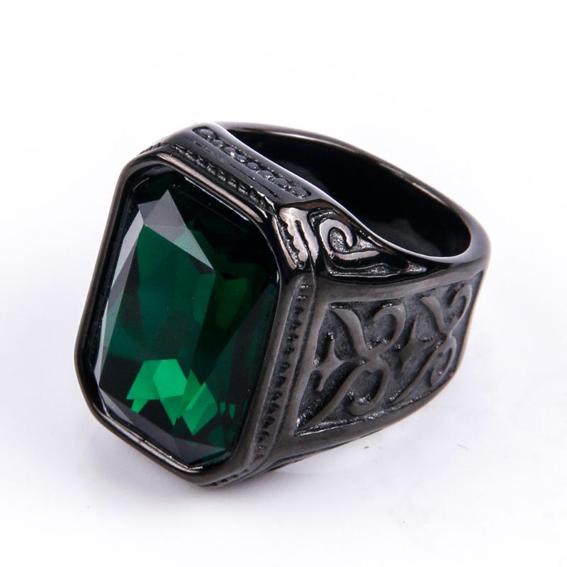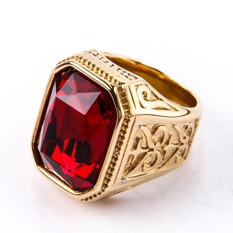 Мужское кольцо с драгоценными камнями, модное квадратное кольцо из нержавеющей стали в стиле хип-хоп, золотое роскошное хипстерское вечерние кольцо на палец