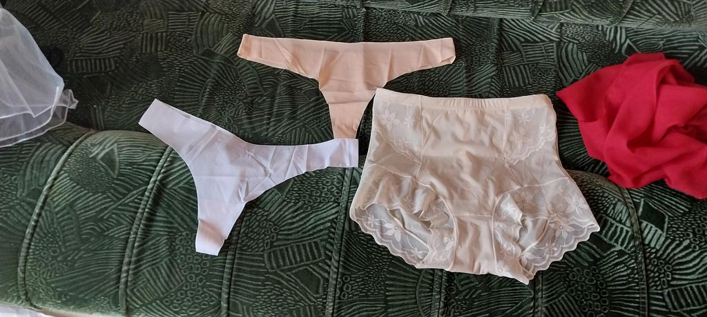 Хорошие трусы, ношу размер 48-50, брала XL. Резинка на талии не жмет, кружево на бедрах не скатывается. Немного имеют эффект уяжки