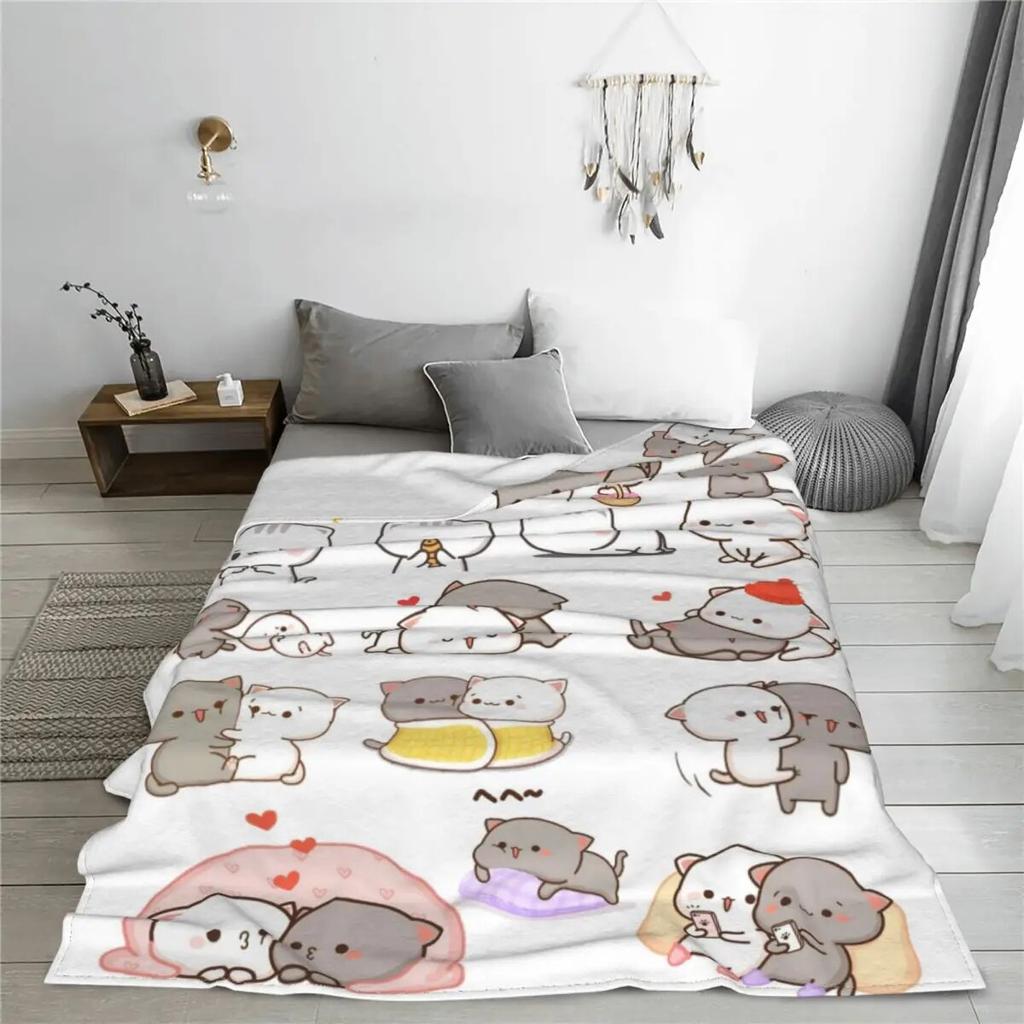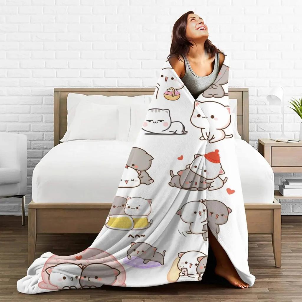 Милое одеяло персика и гома с рисунком моти и котом, фланелевые пледы, летние кондиционеры, персонализированные мягкие теплые покрывала