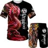 Мужская футболка и шорты, винтажная уличная одежда с принтом дракона, напечатанная на 3D-принтере, высококачественный летний комплект из двух предметов