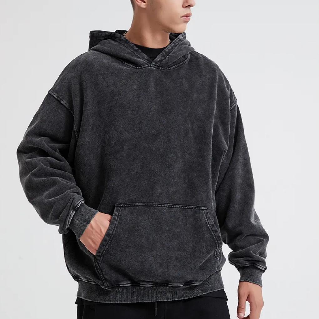Мужская одежда из 100% хлопка, винтажные черные толстовки с кислотной стиркой, мужские и женские толстовки в стиле хип-хоп, повседневные пуловеры