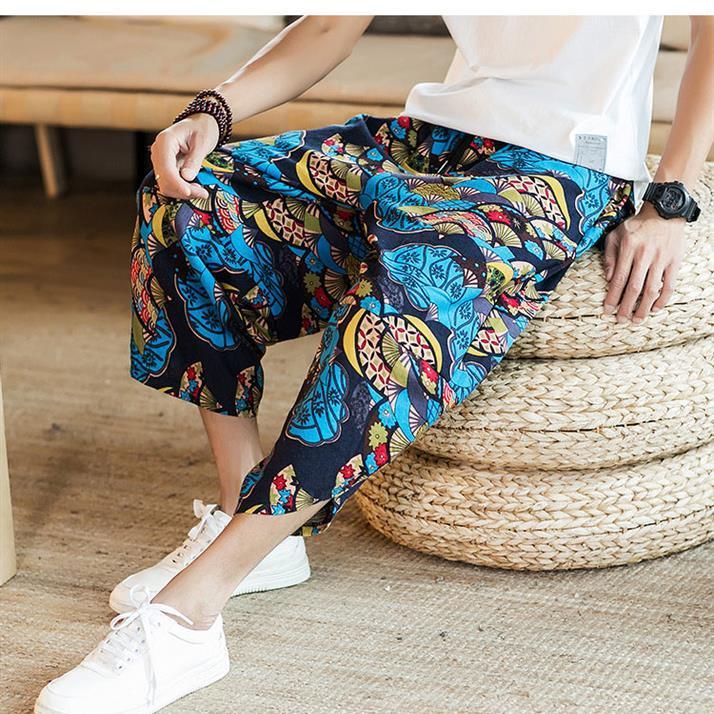 Дышащие мужские льняные брюки-капри с эластичной резинкой на талии, свободные пляжные шорты