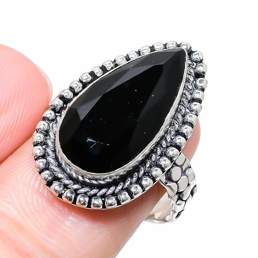 Ювелирное кольцо из стерлингового серебра 925 пробы с черной шпинелью, размер 9 F5m74