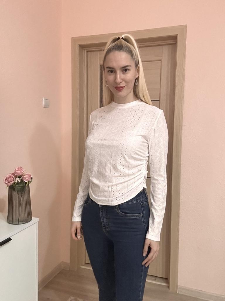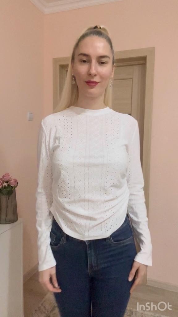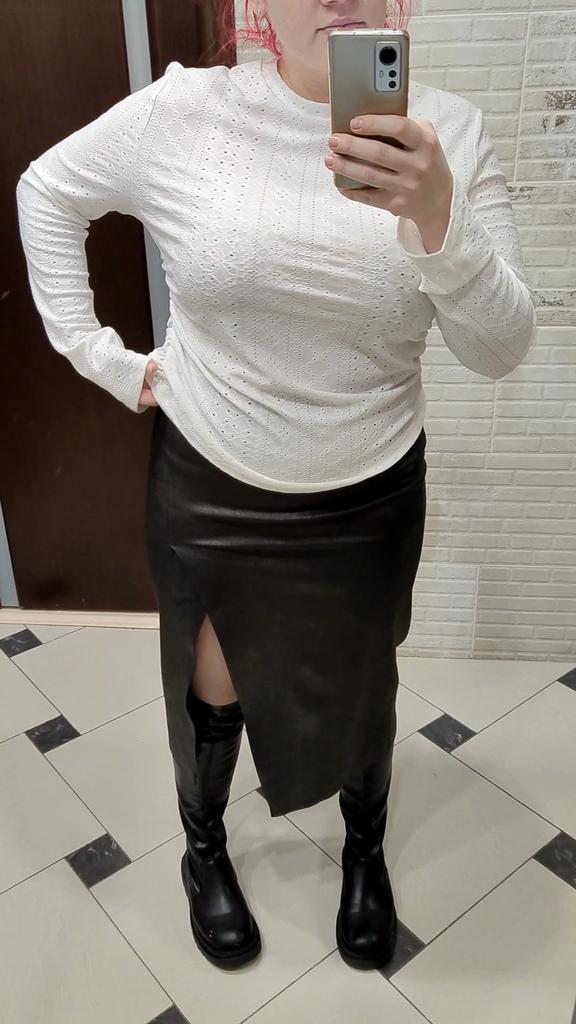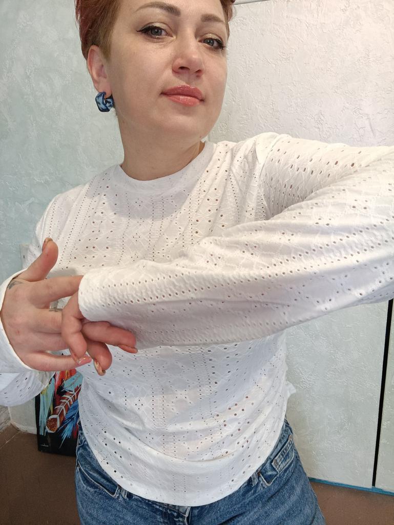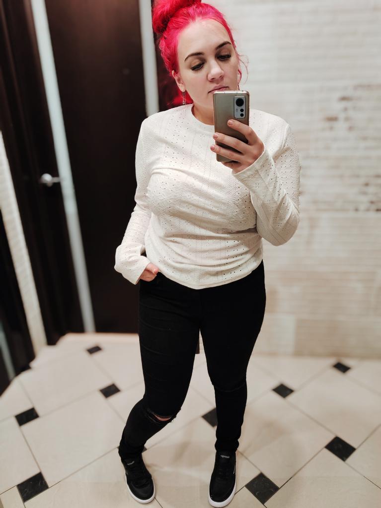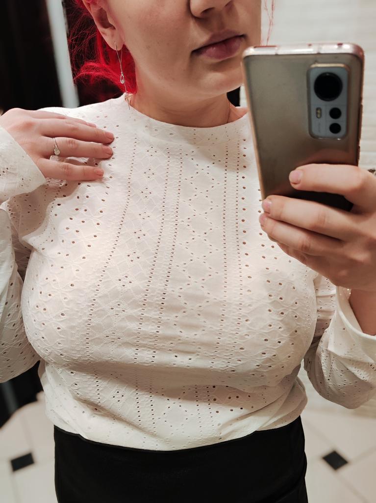 Потрясная блузка мне приехала👍, цена вообще огонь, отличное качество, приятный фасон, я очень довольна. Универсальный дизайн, хорошо смотрится не только с юбками, но и с джинсами. ✔️Качество хорошее, швы и срезы ровные, дефектов или повреждений нет. Подробные фотографии вблизи, смотрите в 5 видео. Перфорация сквозная, длинные рукава, по бокам сборки. ✔️Размер выбрала 2хл. Мои параметры: рост 163см., ог 108см., талия 87 см., живот 100см.. Подробные замеры блузки на 4 фото. Сидит идеально, не тянет ни где, в груди хорошо. Хочу отметить невероятную эластичность материала, и в длину и в ширину тянется. Однозначно рекомендую, цена хорошая, широкая размерная сетка. Обнимаю 🤗 #Ксю !
