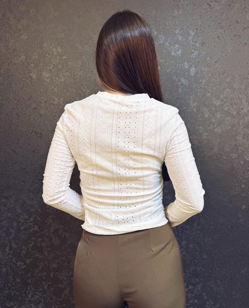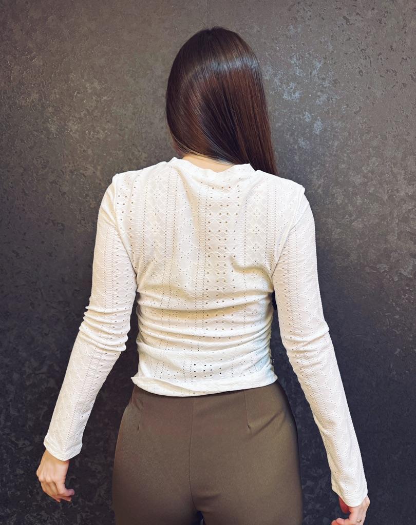 Элегантный стильный топ-футболка с люверсами и длинным рукавом для женской моды