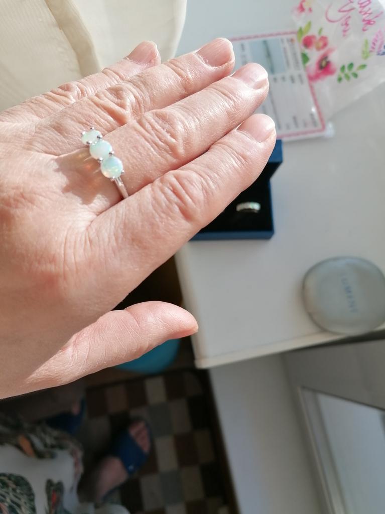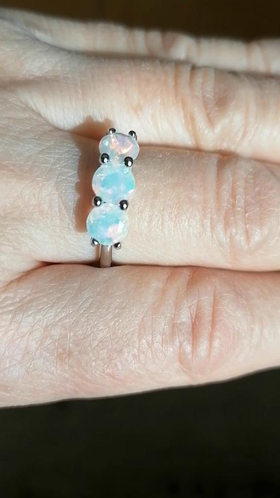 Кольцо качественное, красивое, опалы натуральные, переливаются всеми цветами радуги, размер 9,соответствует нашему 19 р. Проба стоит, сертификат прислали, продавца рекомендую