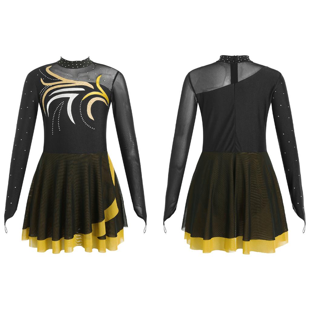 Детское танцевальное платье для соревнований по фигурному катанию, гимнастический трико для подростков, танцевальная одежда с блестками, нарядный костюм балерины