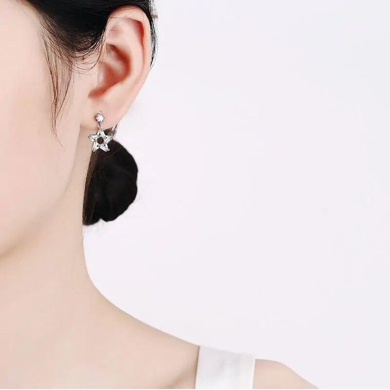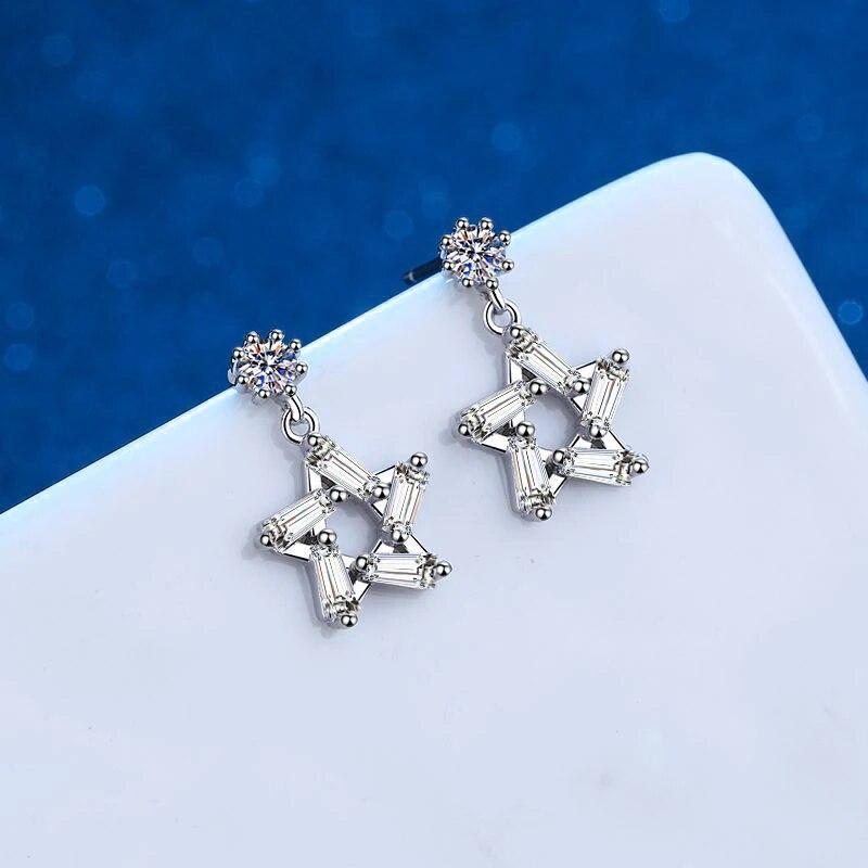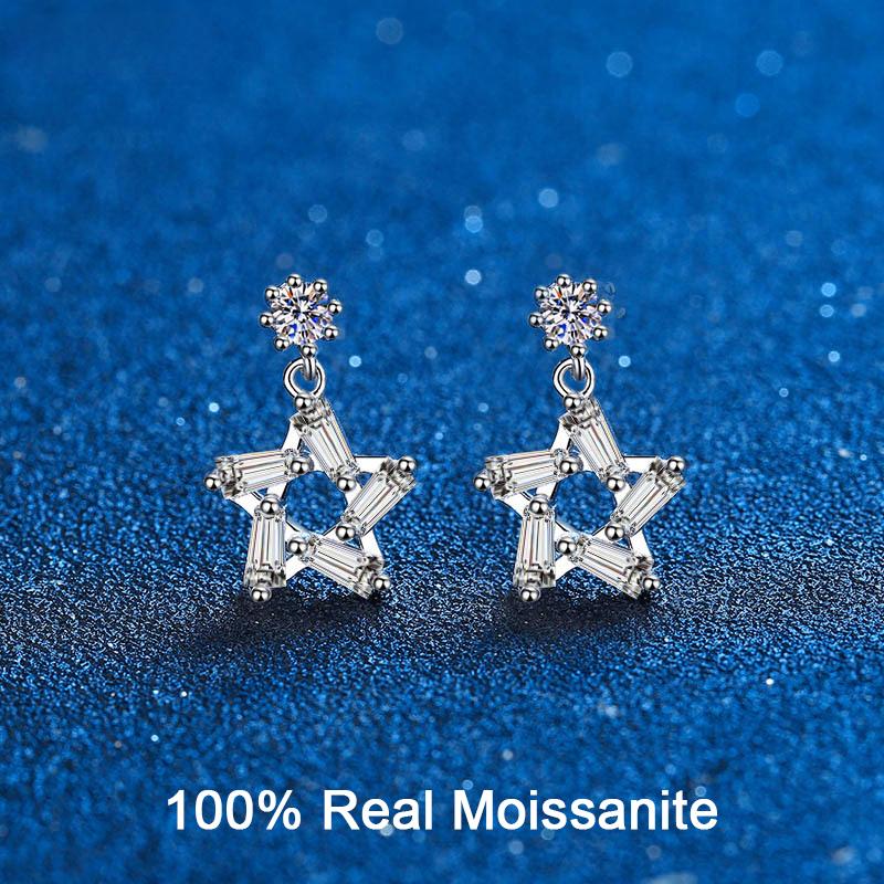 Женские серьги-капли из настоящего муассанита, стерлингового серебра, VVS D, серьги с бриллиантами, 3D висячие серьги со звездами, свадебные украшения
