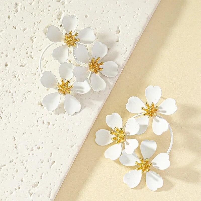 Богемные висячие серьги женские романтические три цветка камелии корейские серьги для женщин Роскошные дизайнерские модные украшения
