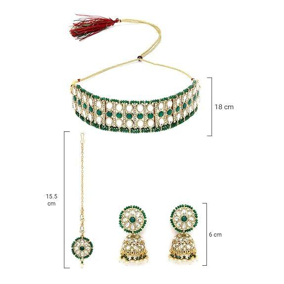 Полный комплект: В комплект украшений входит очаровательное колье-чокер, стильные серьги джхумки и мантика, которые создают завершенный и гармоничный образ, который легко подчеркнет ваш стиль.