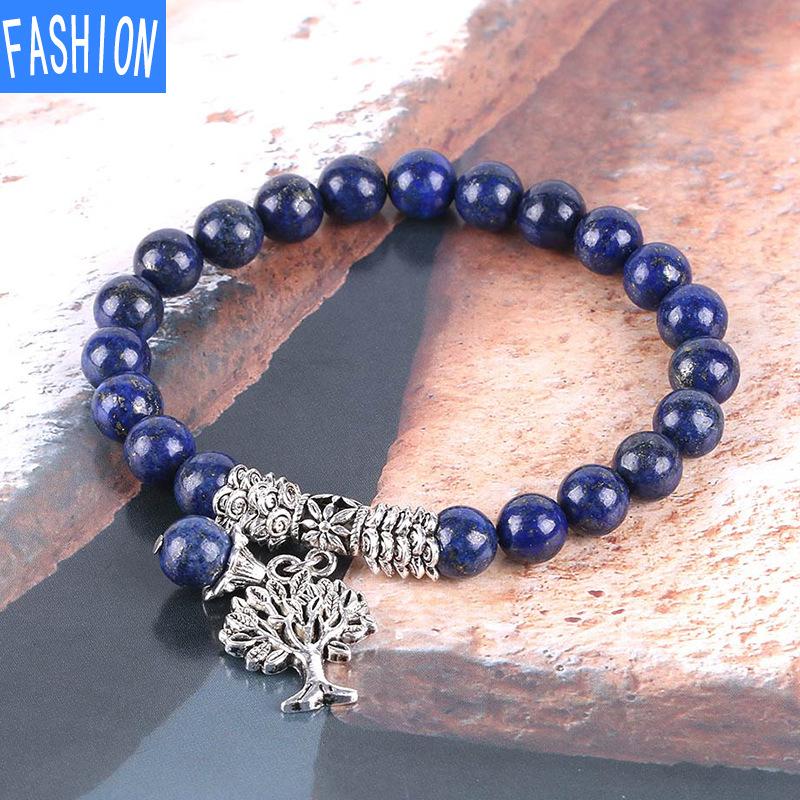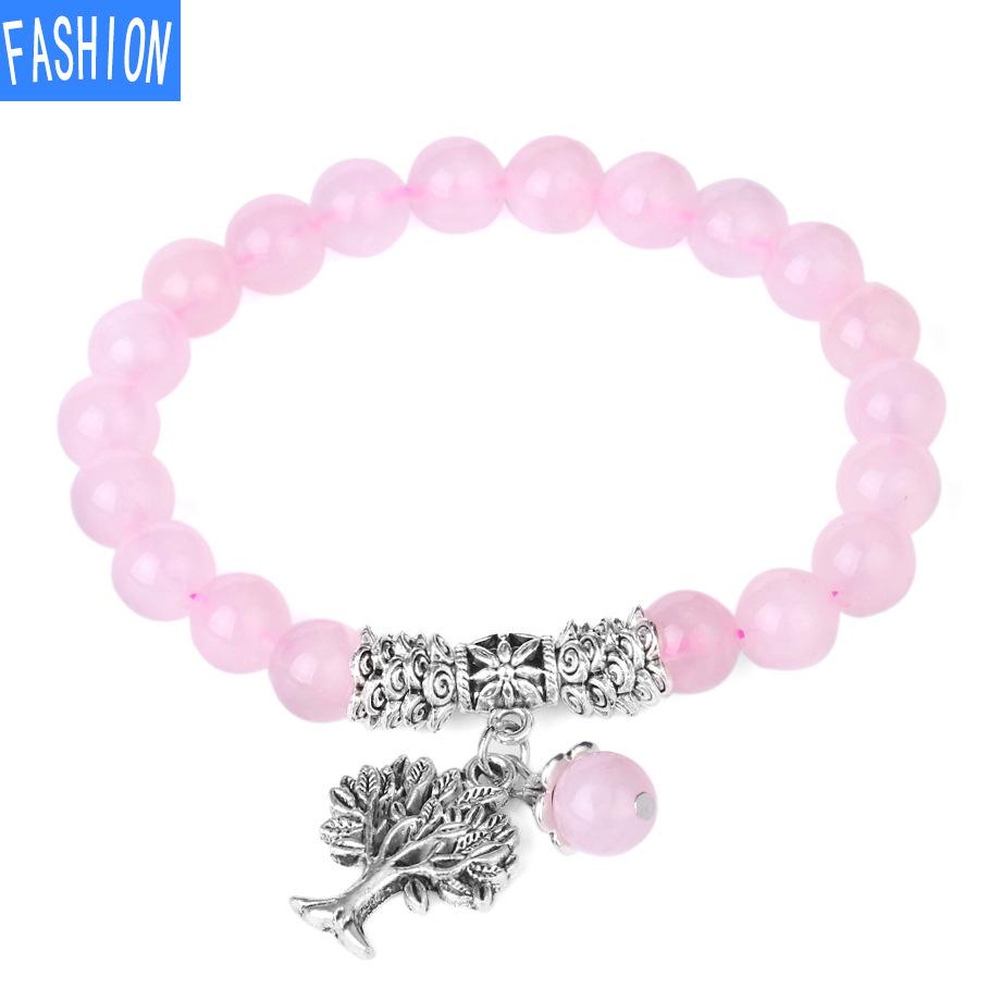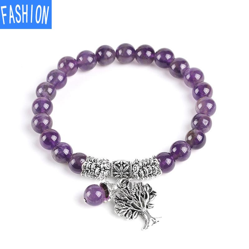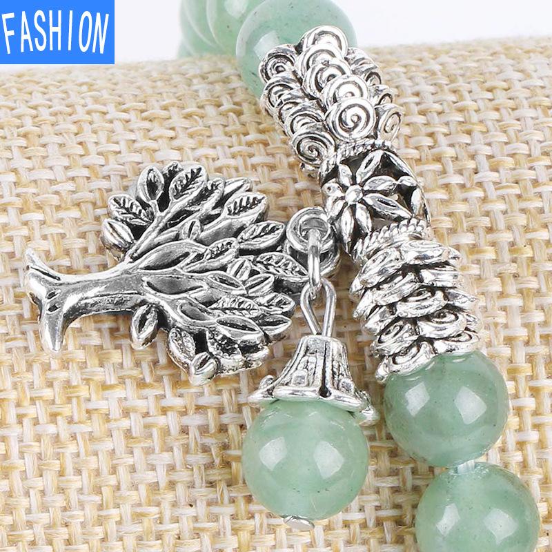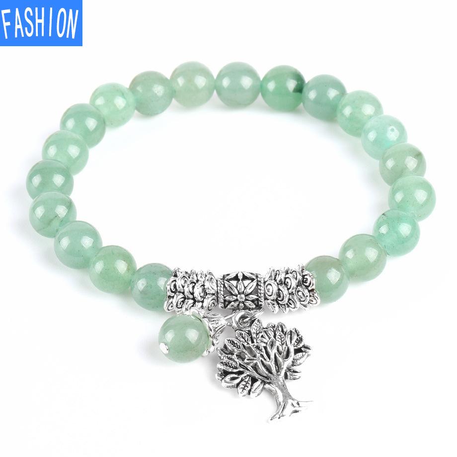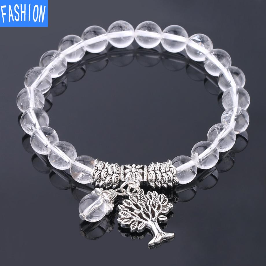 Браслет из натурального хрусталя 8 мм, круглый бисер, браслет из бисера, древнее серебро, дерево жизни, очаровательные украшения из чакры