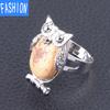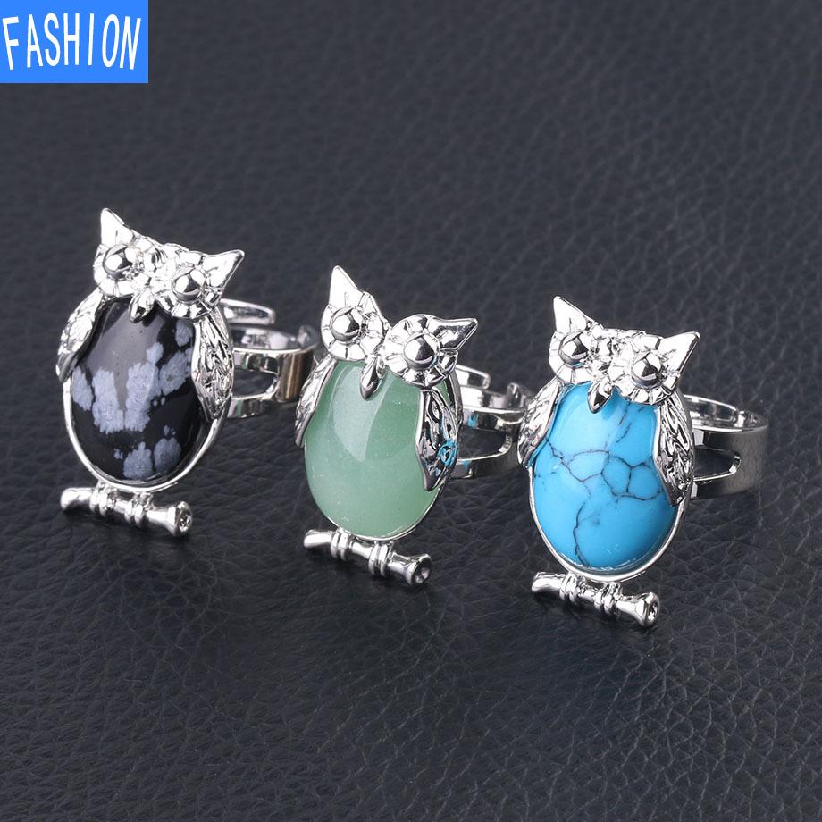 Металлическое регулируемое кольцо с выпуклым натуральным кристаллом в виде совы — купить товар онлайн с бесплатной доставкой по всему миру!