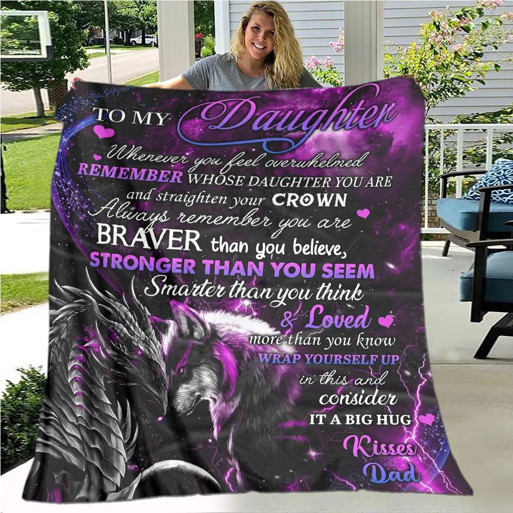Персонализированное одеяло из шерпы для моей дочери с принтом льва, волка и дракона, подарок от мамы, папы, одеяло для дивана-кровати, мягкое одеяло для пикника