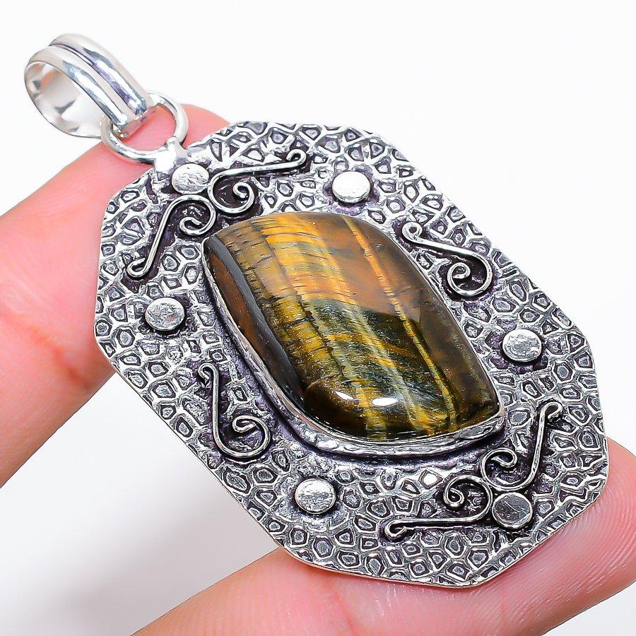 Ювелирный кулон ручной работы из стерлингового серебра 925 пробы с тигровым глазом, 2,56 дюйма, D0G30