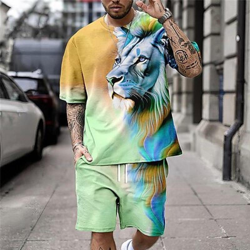 Животное Лев Графические принты Спортивный дизайнер Повседневная мужская рубашка Комплект шорты и футболка Футболка Наряды На открытом воздухе Футболка для ежедневного отпуска Красный Синий Оранжевый — купить товар онлайн с бесплатной доставкой по всему миру!