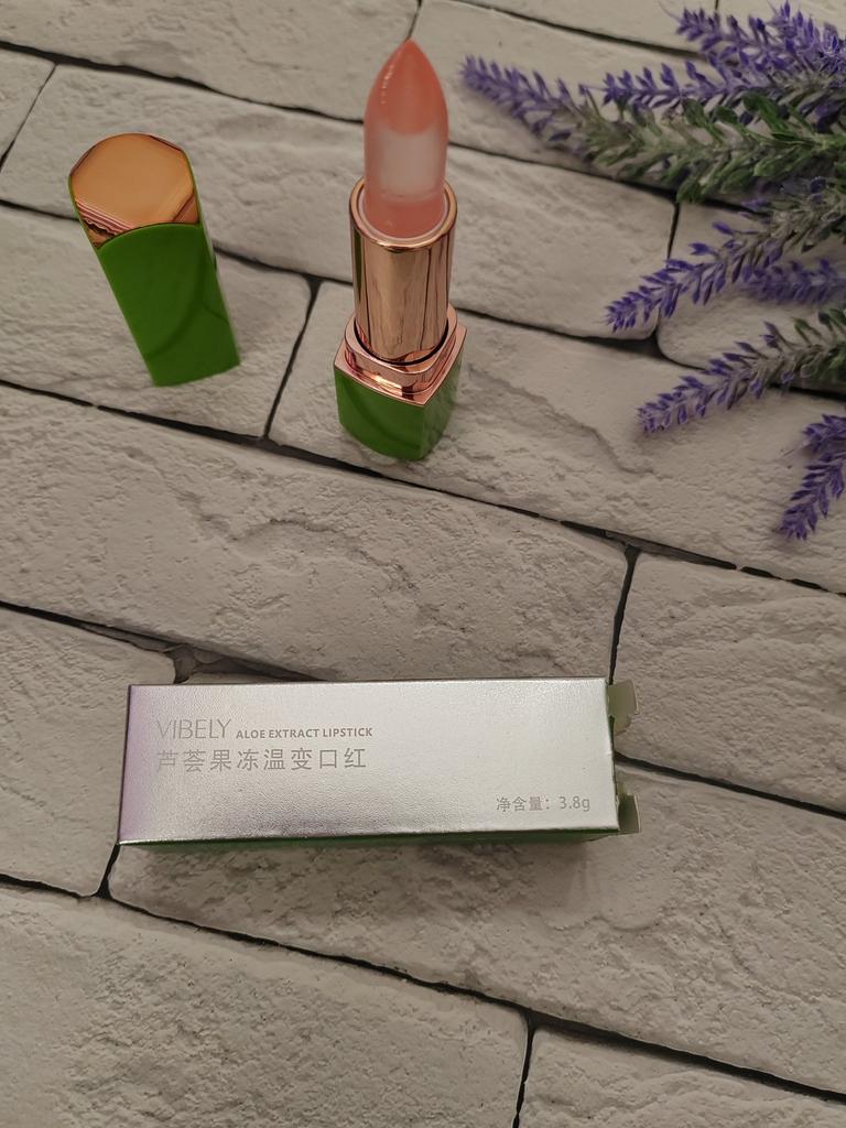 Проявляющийся бальзам для губ с экстрактом алоэ от Vibely Проявляющиеся бальзамы люблю намного больше помад и постоянно ими пользуюсь. Они дают эффект -- свои губы, но только лучше. Приходит в фирменной коробке и плёнке. Бальзам имеет полупрозрачный цвет. У меня в оттенке #4. При нанесении он почти мгновенно проявляется на губах, очень приятно ложится, питает и восстанавливает кожу губ, избавляет от трещинок и обветривания. Бальзам для губ имеет очень нежную текстуру, тает на коже. Розовый оттенок долго остаётся на губах, а блеск постепенно впитывается. Аромат ненавязчивый, какой-то фруктовый. Редко покупаю что-либо из китайской косметики, но данный товар несомненно рекомендую! Качество бальзама очень хорошее! Спасибо продавцу! Спасибо Джум!