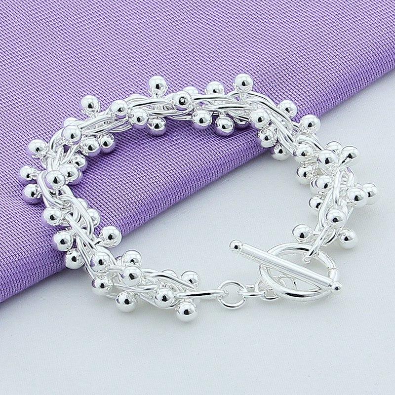 Гладкий браслет из виноградных бусин, серебро 925, модные украшения