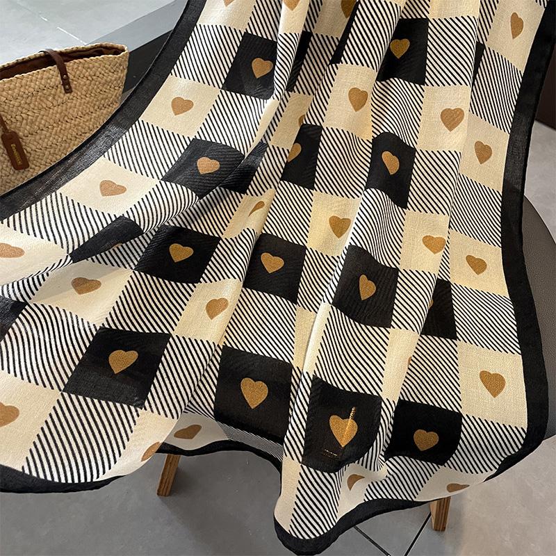 Клетчатый шарф женский хлопок лен марля летнее солнцезащитное пляжное полотенце шаль теплая