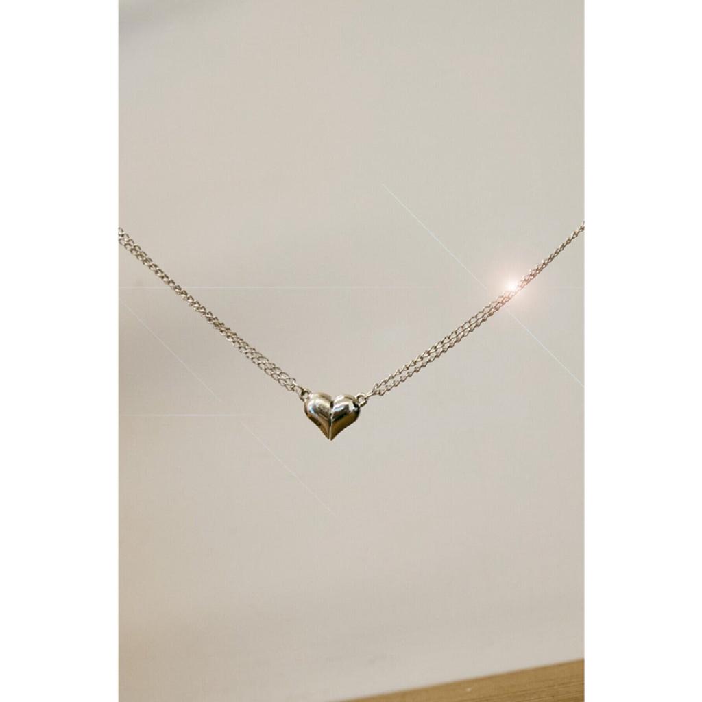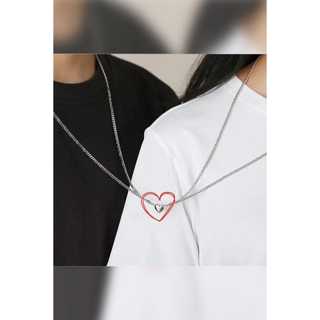 Ожерелье для пары серебряного цвета с магнитным сердечком для любовника