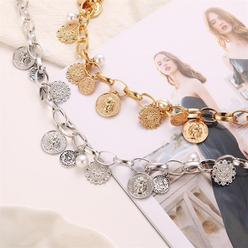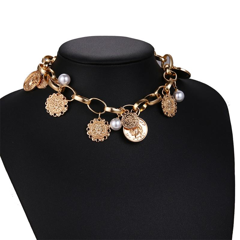 2024 Портрет Монета Жемчуг Колье Цветок Кулон Толстая Цепочка Ожерелье Свадебные Украшения