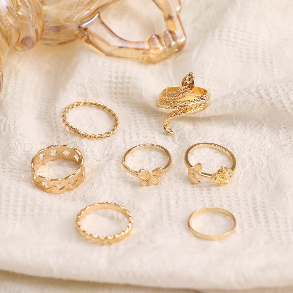 2024 Набор колец в виде змеи и розы, 7 предметов, модные милые кольца нерегулярного тренда, женские украшения для девочек — купить товар онлайн с бесплатной доставкой по всему миру!