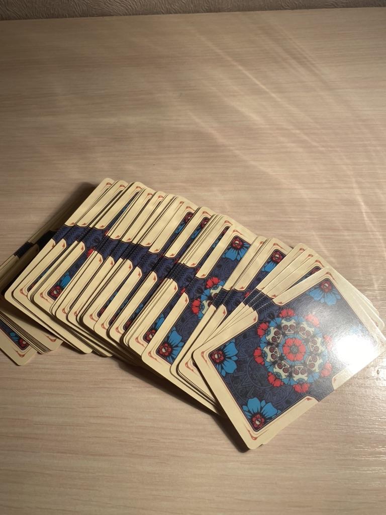 Очень красивая и яркая колода. Удобная в ладони, небольшая, картон тонковат, но довольно плотный. Быстрая доставка.