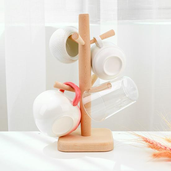 Сушилка для чашек, двухслойная стойка для хранения, долговечная, полезная, деревянная кофейная кружка с 6 когтями, органайзер для деревянного счетчика, бытовые принадлежности