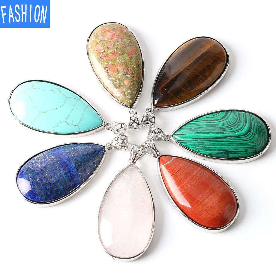 Большой кулон с каплей воды, женский натуральный камень, аметист, порошок, кристалл, лазурит, кулон, простой стиль — купить товар онлайн с бесплатной доставкой по всему миру!