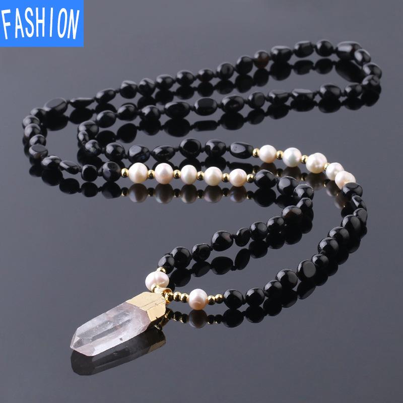 Натуральная энергия, кристальная колонна неправильной формы, длинная веревка, плетеный аметист, черный турмалин, бутиковое ожерелье Hailanbao с подвеской