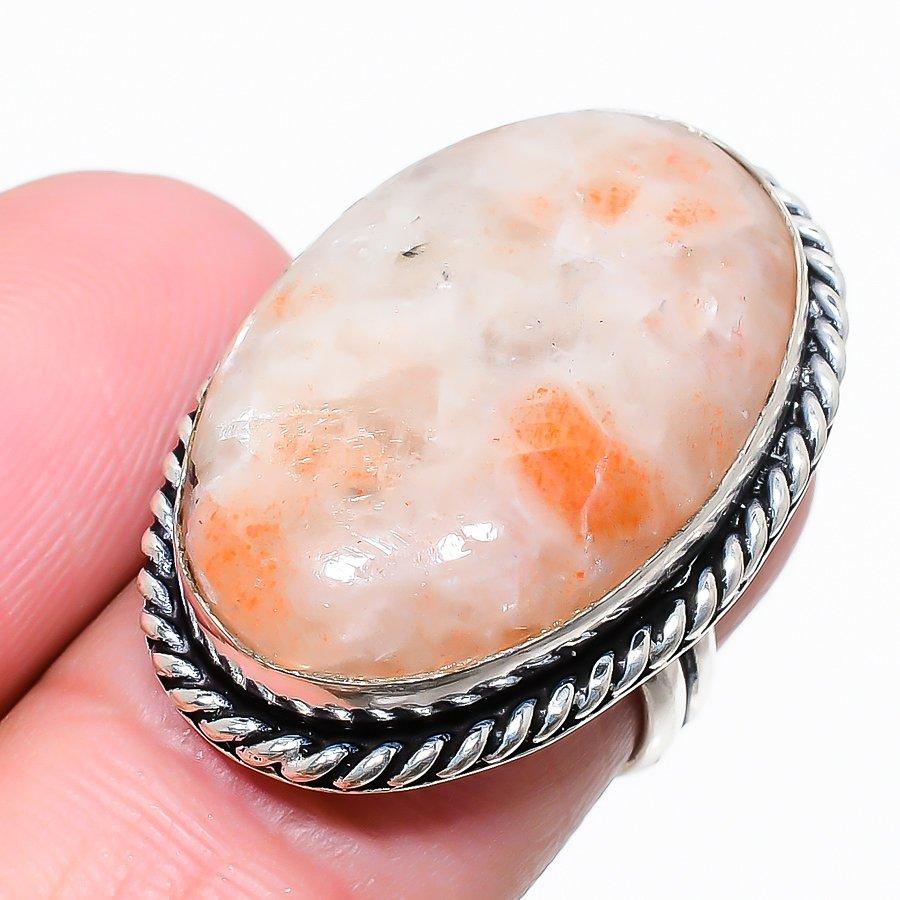 Ювелирное кольцо из стерлингового серебра 925 пробы с солнечным камнем, размер 6,5 D9Z87