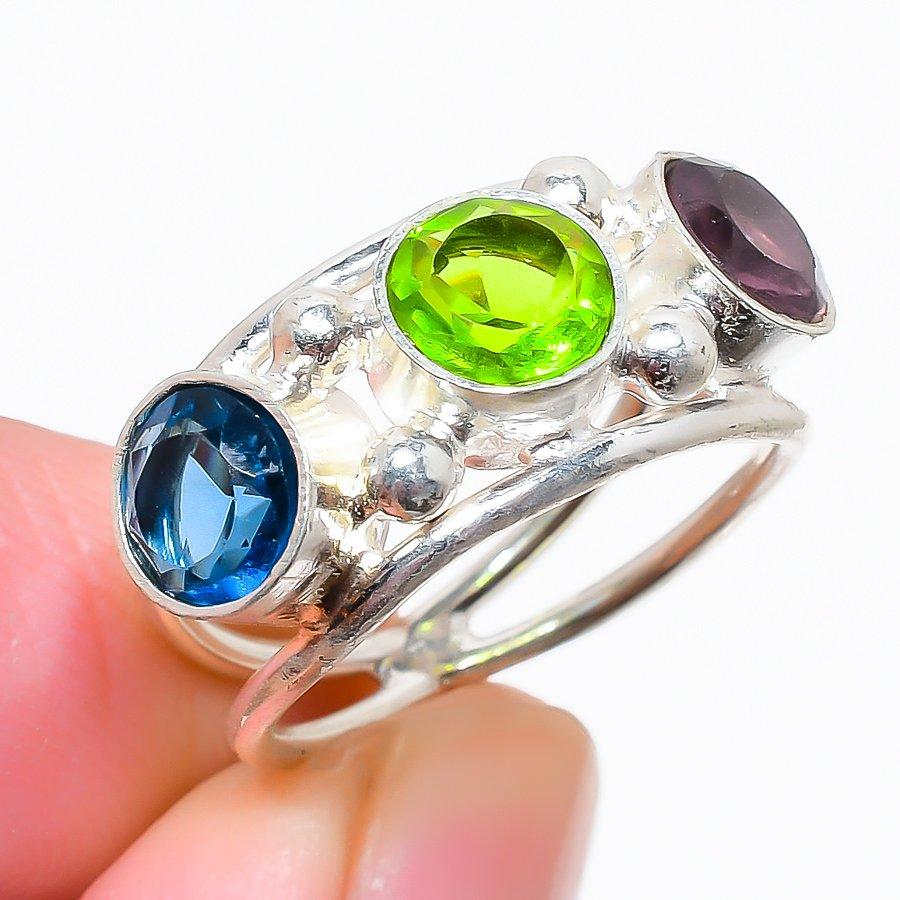 Ювелирное кольцо из стерлингового серебра 925 пробы с перидотом и аметистом, размер 5,5 k5z99