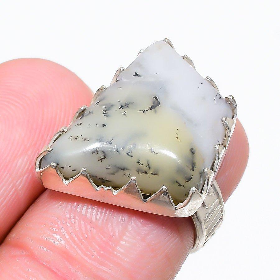 Ювелирное кольцо из стерлингового серебра 925 пробы с дендритом и опалом, размер 6 h2B08