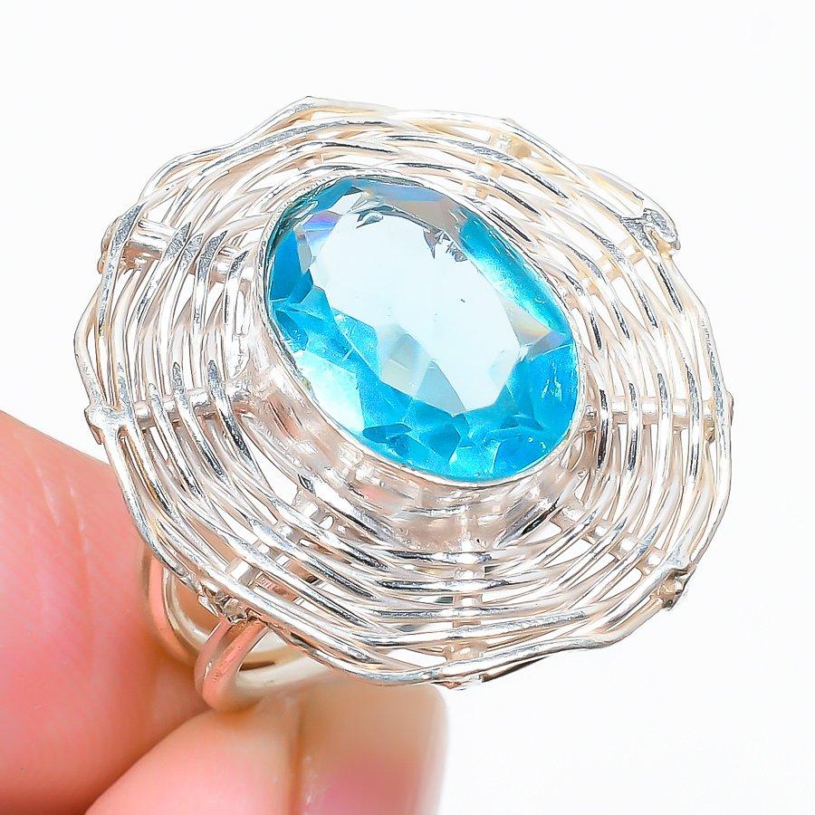 Ювелирное кольцо из стерлингового серебра 925 пробы с синим топазом, размер 6,5 u1F49
