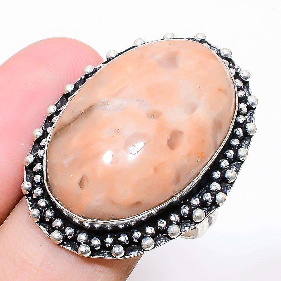 Ювелирное кольцо из стерлингового серебра 925 пробы с розовым арагонитом, размер 8,5 w6p77