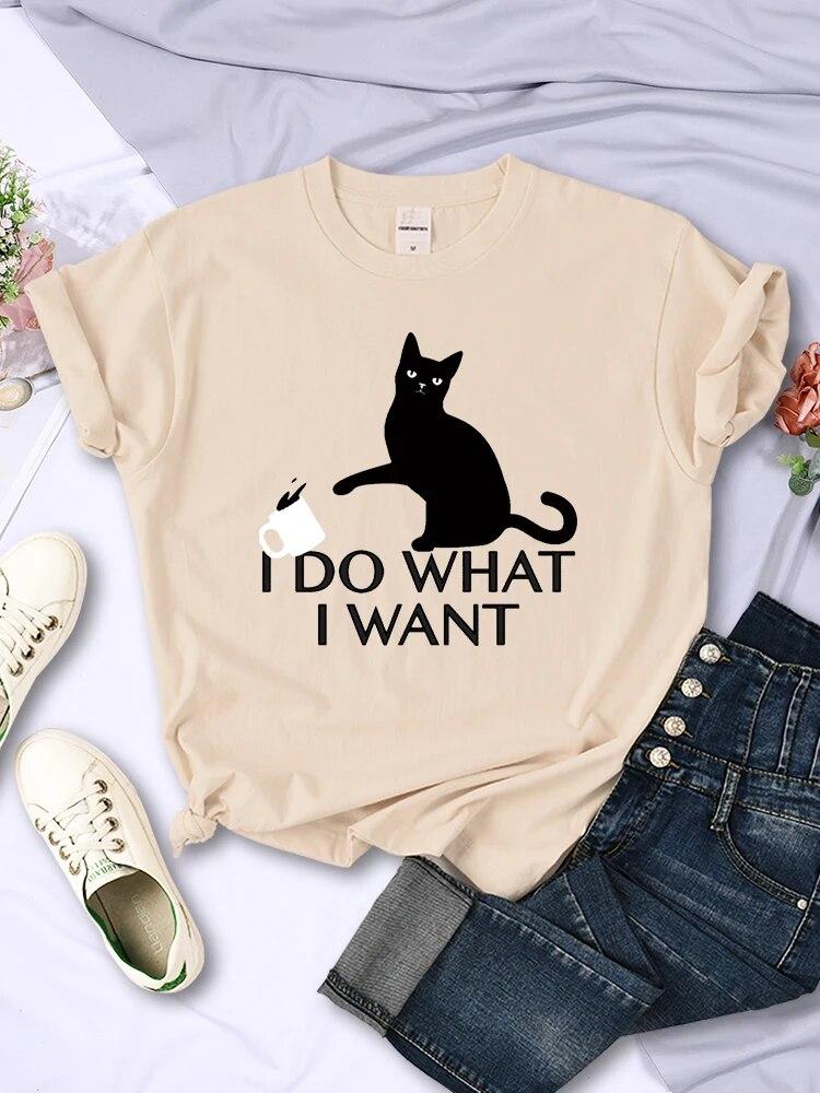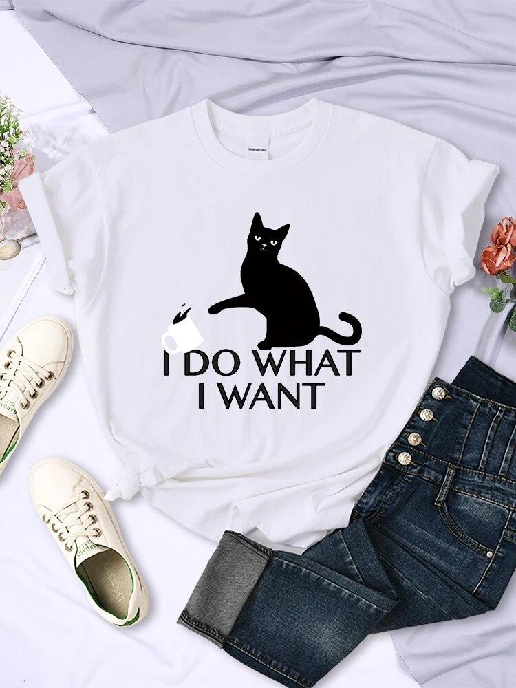 Женские футболки больших размеров с черным котом «Я делаю то, что хочу» с буквами, модные мягкие креативные футболки с короткими рукавами, одежда