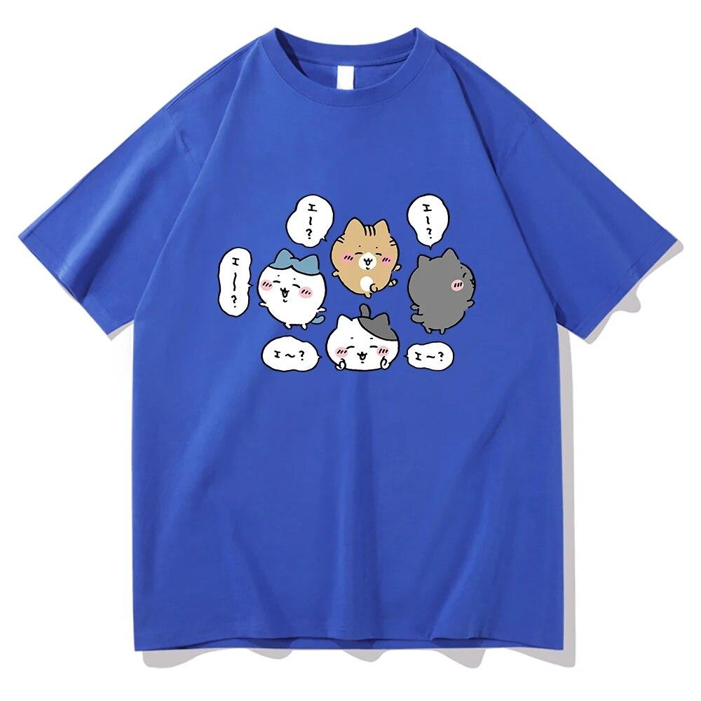 Плюс размер футболка Chiikawa для мужчин и женщин Harajuku эстетический рисунок Kawaii топы аниме мультфильм повседневные хлопковые футболки