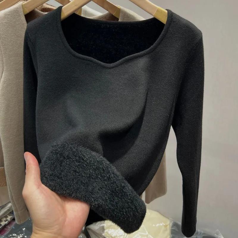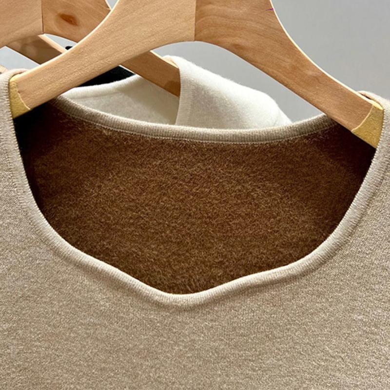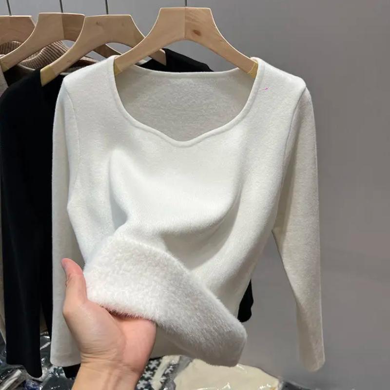Флисовые утепленные вязаные свитера, женские однотонные термобелье, топы, женские зимние модные рубашки с глубоким вырезом