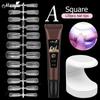 monja 3 шт., набор для наращивания акрилового дизайна ногтей, 6 Вт, светодиодная лампа для сушки, 15 г, УФ-гель, клей, матовый квадратный длинный гроб, миндаль, клей для накладных накладных кончиков
