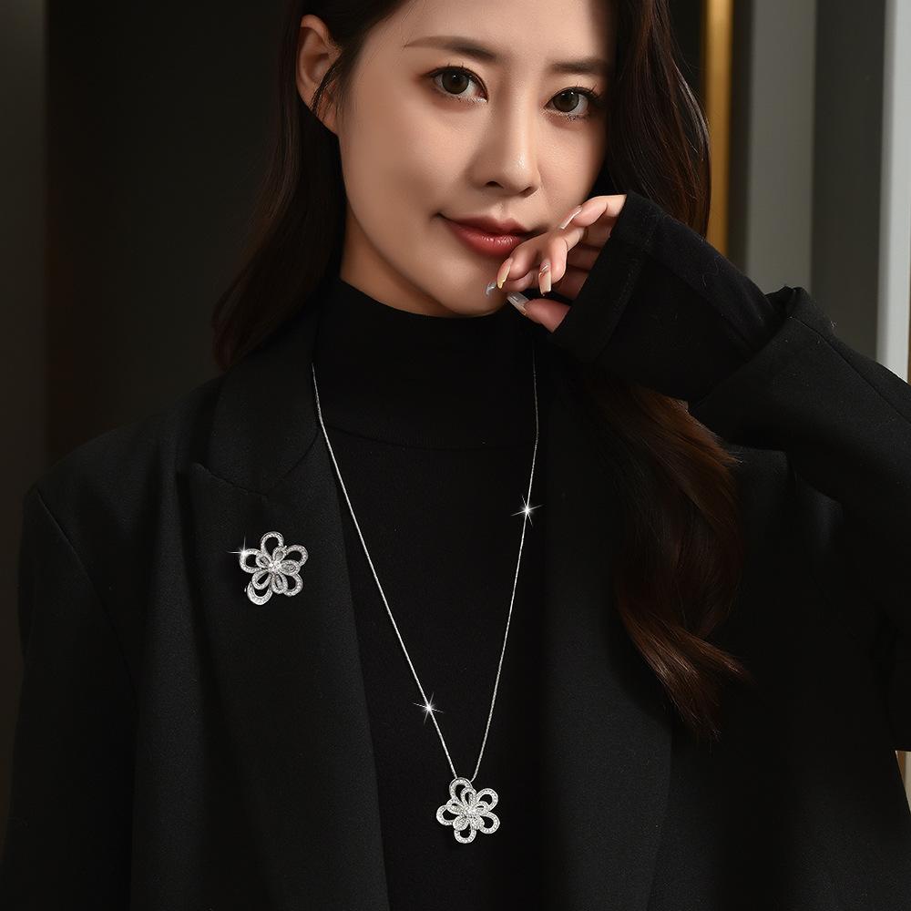 Новое длинное ожерелье с большим цветком и бриллиантами, индивидуальная цепочка для свитера с универсальным темпераментом, брошь для одежды для пальто