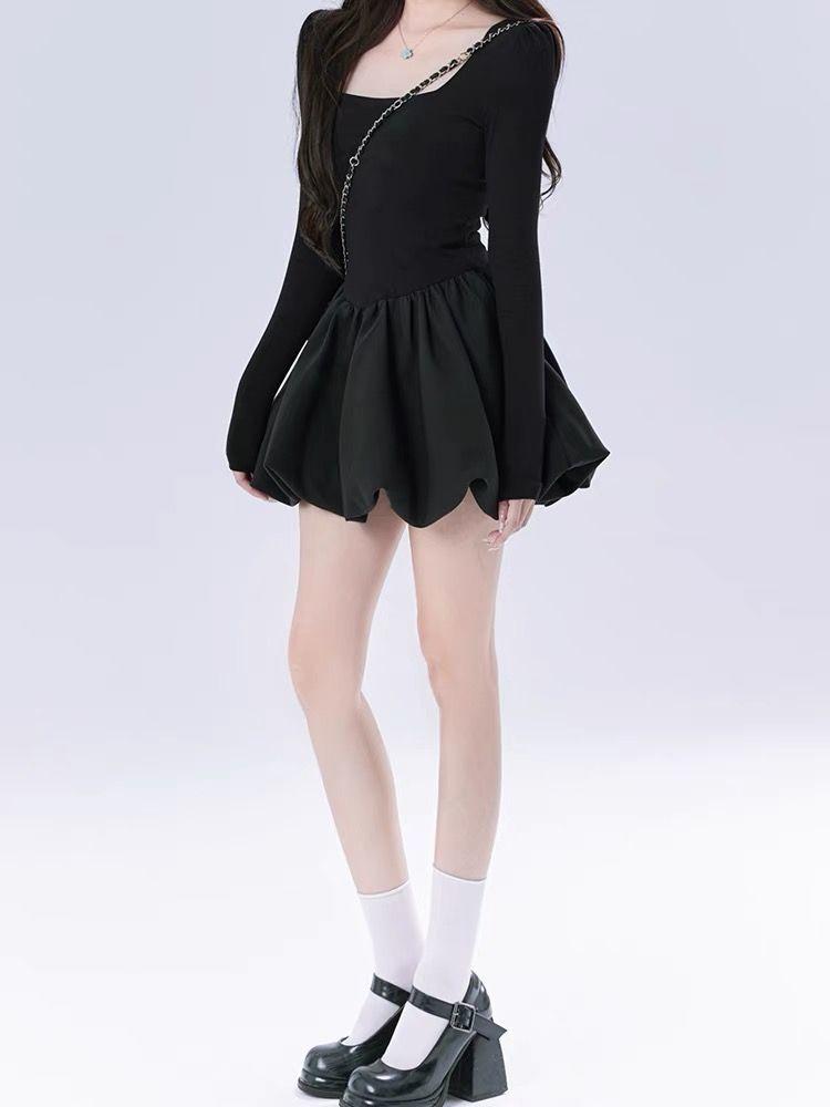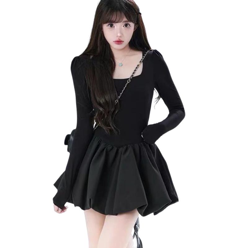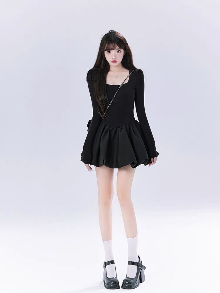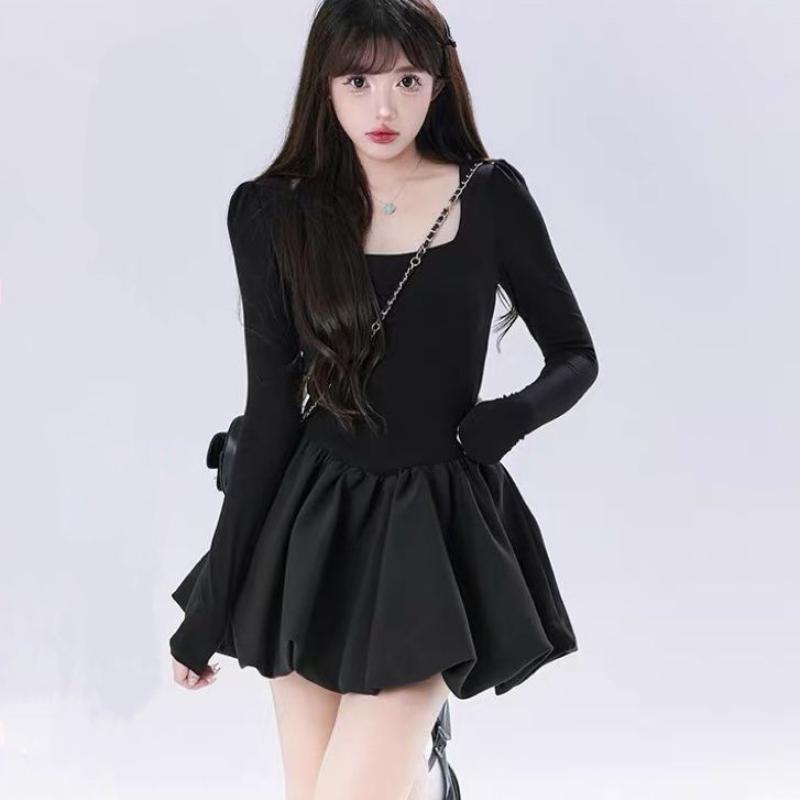 2024 весенние сексуальные повседневные короткие платья трапециевидной формы с высокой талией, бандажные женские уличные модные черные платья с длинными рукавами на шнуровке