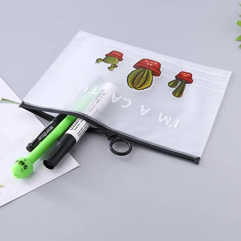 Милая прозрачная сумка для хранения канцелярских принадлежностей с рисунком кактуса, водонепроницаемая, большая вместительная студенческая сумка для ручек, аксессуары для офисного стола