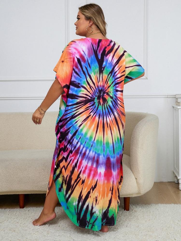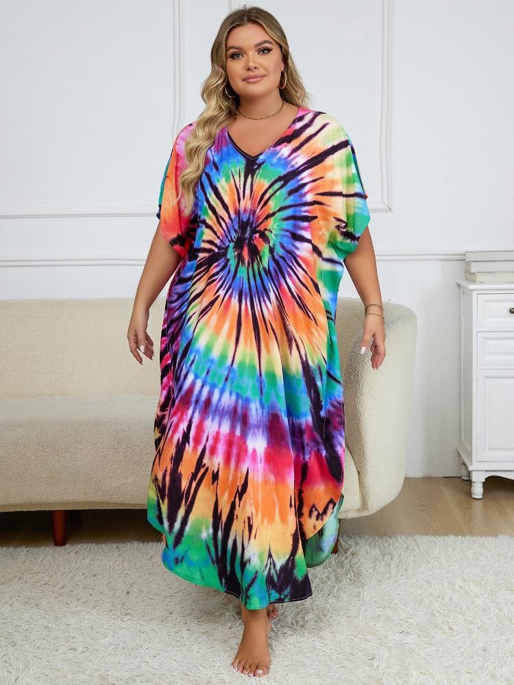 EDOLYNSA Женский кафтан больших размеров, богемное длинное платье с v-образным вырезом и принтом, платье макси, отпускной купальный костюм, домашний халат Q1218
