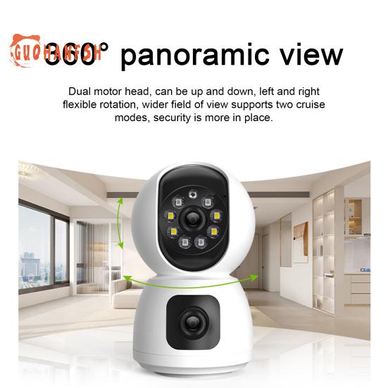 Камера с двумя объективами и дистанционным поворотом на 360 градусов для уменьшения слепых зон и обеспечения комплексного наблюдения дома, в офисе и на открытом воздухе.