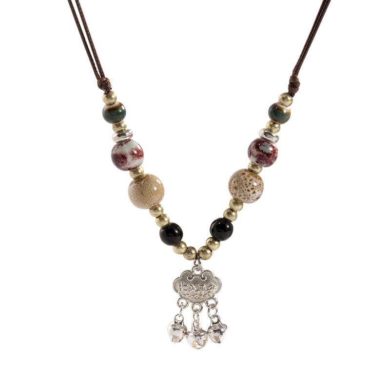 BLINGBAY женское ожерелье с подвеской в китайском стиле ретро, керамическое ожерелье из бисера, универсальное плетеное ожерелье из веревки, персонализированный аксессуар, современные ювелирные изделия, подарок